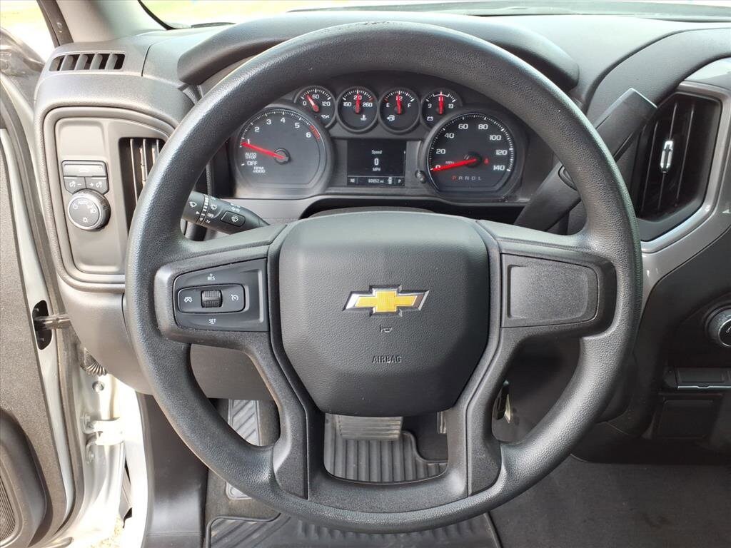 Gillman's Lifetime Engine Warranty lasts as long as you own your vehicle - free with the Gillman Pre-Owned Promise. If the vehicle isn't right for you, return it in purchase condition within 2 days or 200 miles as part of our Happy-Driving Guarantee. Experience power, comfort, and technology in this Silver 2021 Chevrolet Silverado 1500 Custom Crew Cab. Equipped with a strong 2.7L Turbo I4 engine delivering 310hp and paired with an 8-speed automatic transmission, this 4x2 truck is ready for work or play. The spacious Crew Cab offers versatile 60-40 split rear seating and convenient storage with folding rear seats. Stay connected and entertained with the 7-inch Chevrolet Infotainment System, Apple CarPlay, Android Auto, Bluetooth, and available Wi-Fi hotspot. Enjoy added convenience with remote engine start, power tailgate, rearview camera, cruise control, and a trailer hitch for towing needs. Safety features include rear seat reminder, lane change alerts, multiple airbags, stability and traction control, and a tire pressure monitoring system. LED bed lighting, durable cloth upholstery, and body-color bumpers complete the package. This Silverado is the perfect blend of style, performance, and practicality for your daily drive or next adventure. Schedule your test drive today! All vehicles subject to prior sale. We are not responsible for typographical errors and may change information without notice. Photos may not depict the actual vehicle. Tax, title, and license fees not included. Dealer Discount available to all buyers.Vehicles purchased from Gillman Automotive Group include a Bring It Back Guarantee: return the vehicle in purchase condition within two days or 200 miles. New current-model-year vehicles and qualifying pre-owned vehicles (under 90,000 miles and less than 7 years old) are eligible. Guarantee is non-transferable and has no cash value. Lifetime Warranty available on select pre-owned vehicles. See dealer for details; restrictions may apply.