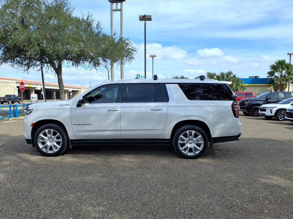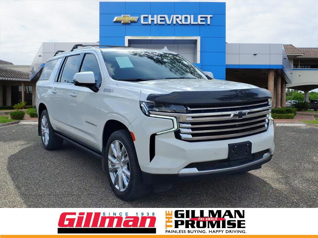 Gillman's Lifetime Engine Warranty lasts as long as you own your vehicle - free with the Gillman Pre-Owned Promise. If the vehicle isn't right for you, return it in purchase condition within 2 days or 200 miles as part of our Happy-Driving Guarantee. Discover premium capability and luxury with this off-white 2021 Chevrolet Suburban High Country 4x4 SUV. Powered by a robust EcoTec3 6.2L V8 engine and 10-speed automatic transmission, this Suburban is built for performance and comfort. Enjoy advanced features like Magnetic Suspension Control, Head-Up Display, Surround View Camera System, and Adaptive Cruise Control for a safe, smooth ride. The spacious interior boasts leather-trimmed upholstery, heated and ventilated front seats, heated rear seats, a Bose premium sound system, and a 10.2-inch Chevrolet Infotainment touchscreen with wireless Apple CarPlay and Android Auto. Convenience abounds with a power panoramic moonroof, power-folding third-row seats, power liftgate, remote start, and retractable assist steps. Stay connected and safe with OnStar, rear cross-traffic alert, lane keeping assist, front and rear automatic emergency braking with pedestrian detection, and a camera-based rearview mirror. This Suburban is ready for family adventures, road trips, or executive travel-don't miss this top-of-the-line SUV! All vehicles subject to prior sale. We are not responsible for typographical errors and may change information without notice. Photos may not depict the actual vehicle. Tax, title, and license fees not included. Dealer Discount available to all buyers.Vehicles purchased from Gillman Automotive Group include a Bring It Back Guarantee: return the vehicle in purchase condition within two days or 200 miles. New current-model-year vehicles and qualifying pre-owned vehicles (under 90,000 miles and less than 7 years old) are eligible. Guarantee is non-transferable and has no cash value. Lifetime Warranty available on select pre-owned vehicles. See dealer for details; restrictions may apply.
