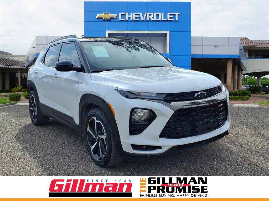 Gillman's Lifetime Engine Warranty lasts as long as you own your vehicle - free with the Gillman Pre-Owned Promise. If the vehicle isn't right for you, return it in purchase condition within 2 days or 200 miles as part of our Happy-Driving Guarantee. Discover the style and versatility of the off-white 2023 Chevrolet Trailblazer RS 4dr SUV. Powered by an efficient ECOTEC 1.3L Turbo engine with FWD and CVT, this Trailblazer RS stands out with sporty black roof rails, black grille, and contrast stitching upholstery accents. Stay connected with wireless Apple CarPlay and Android Auto, plus a 7-inch Chevrolet Infotainment touchscreen and built-in Wi-Fi hotspot. Enjoy advanced safety features including Front Automatic Emergency Braking, Lane Keeping Assist, Pedestrian Detection, and a rearview camera system for peace of mind on every drive. Comfort features include heated front seats, a heated steering wheel, power-adjustable driver's seat with lumbar support, and leatherette upholstery accents. Remote engine start and proximity key entry add everyday convenience. With a bold design and comprehensive tech and safety features, this Trailblazer RS is ready for your next adventure. All vehicles subject to prior sale. We are not responsible for typographical errors and may change information without notice. Photos may not depict the actual vehicle. Tax, title, and license fees not included. Dealer Discount available to all buyers.Vehicles purchased from Gillman Automotive Group include a Bring It Back Guarantee: return the vehicle in purchase condition within two days or 200 miles. New current-model-year vehicles and qualifying pre-owned vehicles (under 90,000 miles and less than 7 years old) are eligible. Guarantee is non-transferable and has no cash value. Lifetime Warranty available on select pre-owned vehicles. See dealer for details; restrictions may apply.