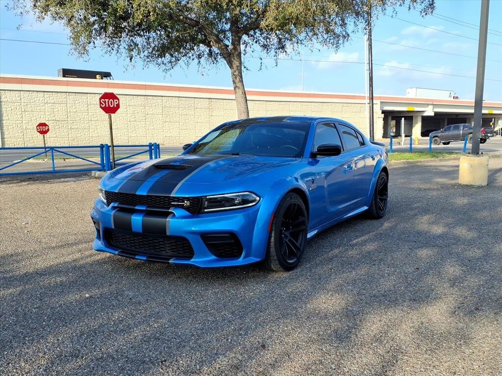 Gillman's Lifetime Engine Warranty lasts as long as you own your vehicle - free with the Gillman Pre-Owned Promise. If the vehicle isn't right for you, return it in purchase condition within 2 days or 200 miles as part of our Happy-Driving Guarantee. Experience the thrill of pure American muscle with this stunning Blue 2023 Dodge Charger Scat Pack Widebody Sedan. Powered by a robust HEMI 6.4L V8 engine delivering 485hp and 475 ft-lbs of torque, this Charger offers exhilarating performance paired with the agility of a sport-tuned suspension and Brembo premium brakes. Enjoy advanced tech like Uconnect with an 8.4-inch touchscreen, Apple CarPlay, Android Auto, SiriusXM, and a customizable 7-inch digital instrument cluster. Comfort is top-tier with Nappa Leather/Alcantara sport bucket seats featuring the Scat Pack logo, heated front seats, a heated steering wheel, and dual-zone automatic climate control. Drive with confidence thanks to rear parking sensors, rearview camera, blind spot monitoring, and a host of safety features. Distinctive widebody styling, a decklid rear spoiler, 20-inch wheels, and performance exhaust complete the aggressive look. With premium audio, remote engine start, and Wi-Fi hotspot, this Charger is ready for your next adventure. See it today and feel the power. All vehicles subject to prior sale. We are not responsible for typographical errors and may change information without notice. Photos may not depict the actual vehicle. Tax, title, and license fees not included. Dealer Discount available to all buyers.Vehicles purchased from Gillman Automotive Group include a Bring It Back Guarantee: return the vehicle in purchase condition within two days or 200 miles. New current-model-year vehicles and qualifying pre-owned vehicles (under 90,000 miles and less than 7 years old) are eligible. Guarantee is non-transferable and has no cash value. Lifetime Warranty available on select pre-owned vehicles. See dealer for details; restrictions may apply.