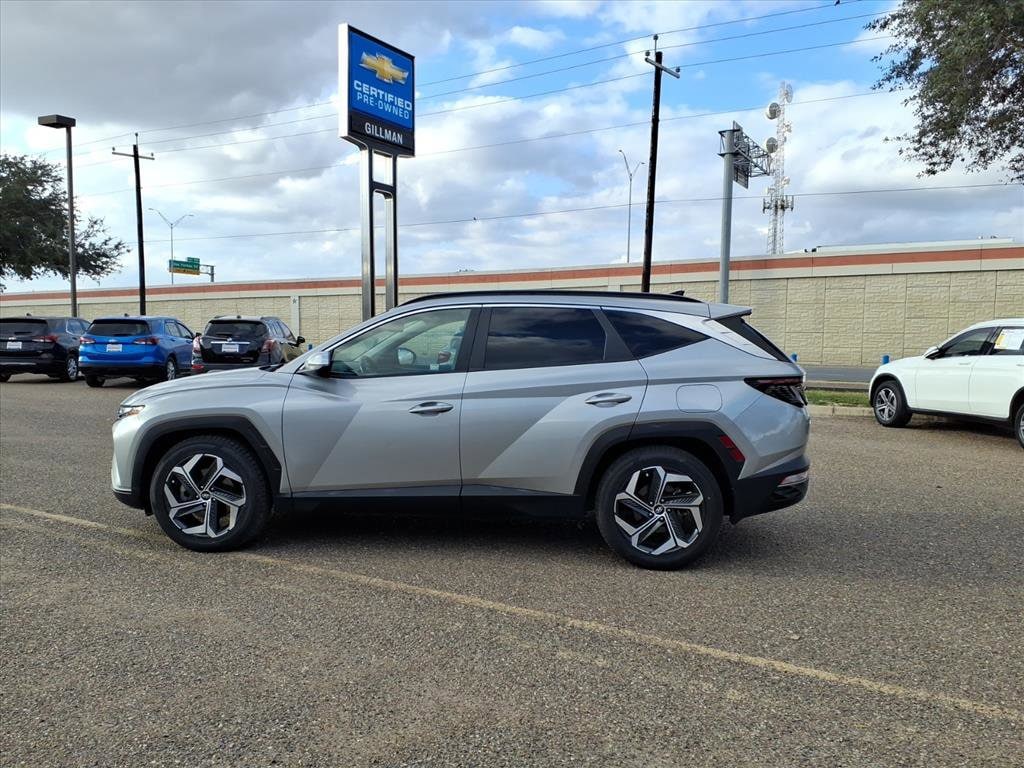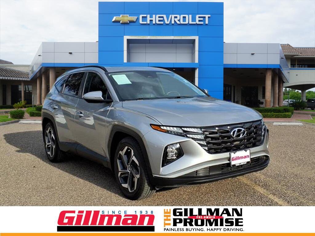 Gillman's Lifetime Engine Warranty lasts as long as you own your vehicle - free with the Gillman Pre-Owned Promise. If the vehicle isn't right for you, return it in purchase condition within 2 days or 200 miles as part of our Happy-Driving Guarantee. Drive in style and comfort with this Silver 2023 Hyundai TUCSON SEL SUV. Well-maintained and packed with advanced safety and tech features, this TUCSON delivers a smooth and efficient ride thanks to its 2.5L I4 engine and 8-speed shiftable automatic transmission. Enjoy peace of mind with Intersection/junction Turn Automatic Emergency Braking, Lane Keeping Assist with Blind Spot Integration, and Rear Cross Traffic Alert. Stay connected with wireless Apple CarPlay and Android Auto, an 8-inch infotainment touchscreen, and Bluetooth wireless data link. Convenience is at your fingertips with a power-operated rear liftgate, push-button start, heated front seats, and adaptive cruise control. The spacious interior offers split-folding rear seats, dual-zone automatic climate control, and plenty of cargo room for all your needs. Aluminum alloy wheels, LED headlights, and a sleek design make this TUCSON stand out on the road. Schedule your test drive today and experience the perfect blend of safety, technology, and versatility. All vehicles subject to prior sale. We are not responsible for typographical errors and may change information without notice. Photos may not depict the actual vehicle. Tax, title, and license fees not included. Dealer Discount available to all buyers.Vehicles purchased from Gillman Automotive Group include a Bring It Back Guarantee: return the vehicle in purchase condition within two days or 200 miles. New current-model-year vehicles and qualifying pre-owned vehicles (under 90,000 miles and less than 7 years old) are eligible. Guarantee is non-transferable and has no cash value. Lifetime Warranty available on select pre-owned vehicles. See dealer for details; restrictions may apply.