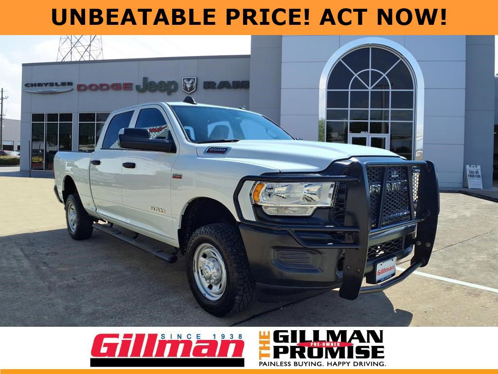 Gillman's Lifetime Engine Warranty lasts as long as you own your vehicle - free with the Gillman Pre-Owned Promise. If the vehicle isn't right for you, return it in purchase condition within 2 days or 200 miles as part of our Happy-Driving Guarantee. Tackle any job with this 2022 Ram 2500 Tradesman Crew Cab 4x4, equipped with a powerful HEMI 6.4L V8 engine and 8-speed shiftable automatic transmission. The 6.3 ft. short bed provides versatile hauling, while the Class V trailer hitch, 7-pin and 4-pin trailer wiring, and auxiliary oil/transmission coolers make this truck tow-ready for your toughest workloads. Enjoy modern tech like Uconnect infotainment with a 5-inch touchscreen, Bluetooth connectivity, voice-operated hands-free calling, and a rearview camera. Inside, durable rubber/vinyl flooring and vinyl upholstery are designed for easy cleanup. Benefit from safety features such as front and rear side curtain airbags, electronic stability control, hill holder, tire pressure monitoring, and child safety locks. Additional conveniences include cruise control, power door locks, power windows, heated side mirrors, auto on/off headlights, and ample in-cabin storage. If you need a reliable, rugged, and tech-savvy pickup, this Ram 2500 is ready to work as hard as you do. All vehicles subject to prior sale. We are not responsible for typographical errors and may change information without notice. Photos may not depict the actual vehicle. Tax, title, and license fees not included. Dealer Discount available to all buyers.Vehicles purchased from Gillman Automotive Group include a Bring It Back Guarantee: return the vehicle in purchase condition within two days or 200 miles. New current-model-year vehicles and qualifying pre-owned vehicles (under 90,000 miles and less than 7 years old) are eligible. Guarantee is non-transferable and has no cash value. Lifetime Warranty available on select pre-owned vehicles. See dealer for details; restrictions may apply.